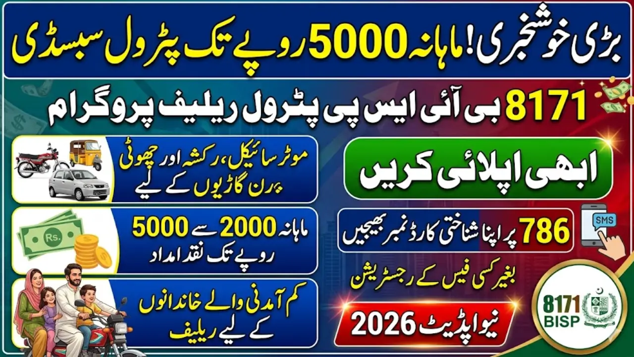 The 8171 BISP Petrol Relief Program 2026 is a targeted subsidy scheme that offers monthly financial support ranging from Rs. 2,000 to Rs. 5,000. It is specifically designed for low-income individuals who are struggling with increasing fuel prices.